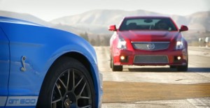 Ok, so I know they’re not even in the same league; the Ford Shelby GT500 is a raw, muscular pony car with pretty good handling and a nameplate that goes back to 1964, while the Cadillac CTS-V Coupe is a luxury-oriented coupe that hangs with BMWs, and whose name has only been used for the last several years. But, both being American cars, someone was going to pit them against each other, and it turns out Road & Track got it done, and posted it to YouTube. Click past the jump to see the video.