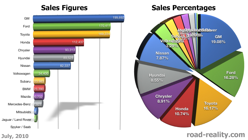 While most companies held steady, a few stuck out. On the positive end of things, Honda, Nissan and Toyota had good increases from June to July, while Ford, Jaguar/Land Rover and Mercedes-Benz lost some sales.