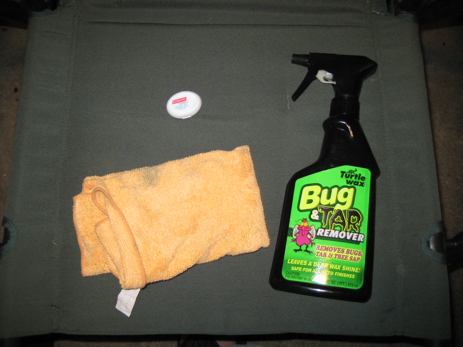 - Bug & Tar remover. I used a combination of Turtle Wax’s product, as well as Stoner’s brand “Tarminator”, the latter of which worked best.