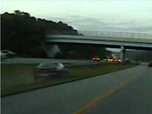A 100-mph (estimated) crash was caught on a dashboard camera by a Sugarcreek Township police car, in the Beaver Creek area of Ohio. The driver, 19 year-old Brennan S. Eden, was driving his Pontiac Firebird on the median strip when he struck the guardrail, launched his car sideways, and careened into the center post of an overpass. At that point, he was ejected from the car and the car itself split into 3 pieces. Surprisingly, Eden lived, and was conscious at the scene, although for obvious reasons he was flown to Miami Valley Hospital where he’s listed in critical condition. The crash happened around 7:15am on August 23rd, shutting down southbound traffic for 6 hours on I-675. Click past the jump for the video.