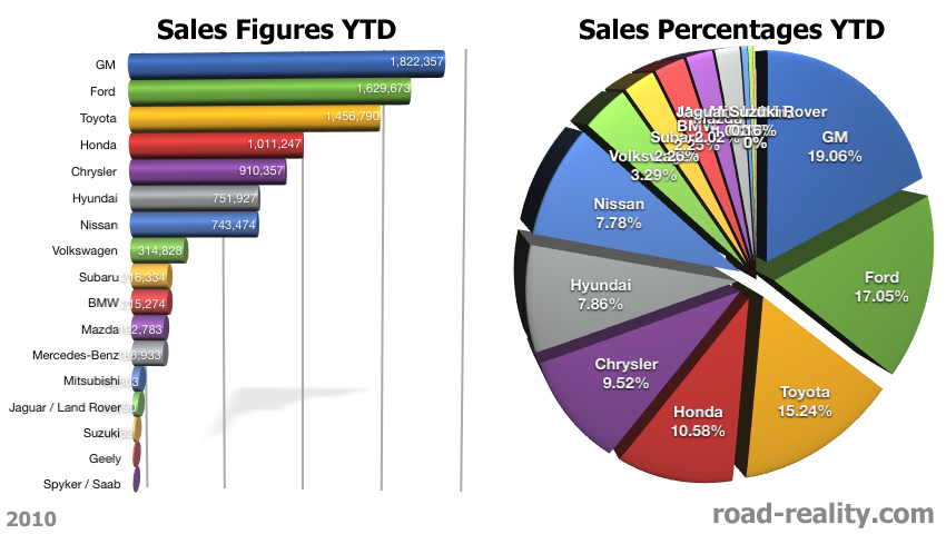 Overall, the industry has sold just over 9.5-million vehicles, and with only two months left in the year, it’ll be interesting to see if the market can buy up 2 more million vehicles in November and December, to meet my earlier prediction of 11.5-million new-cars sold in 2010. If sales stay close to where they’ve been or continue the downward slide started after July, we’re looking at closer to 11-million sales, but no more.