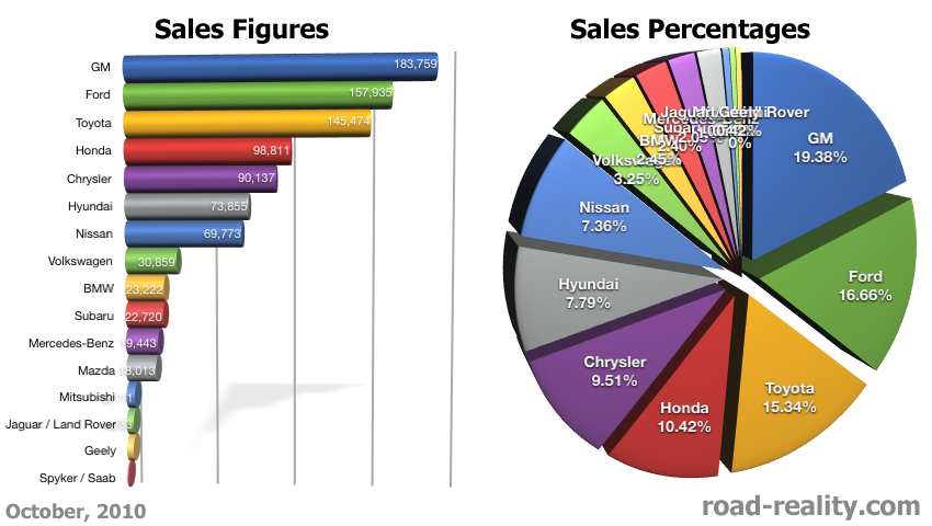 The spookiest month of the year is over … and it wasn’t scary for most automakers. Sales were down just a hair from September, which I expected, as schools get into full swing and most people start shopping for the holidays. I don’t expect sales to pick back up until closer to the new year, with some people receiving transportation as a gift, and any leftover 2010 models having their prices slashed.