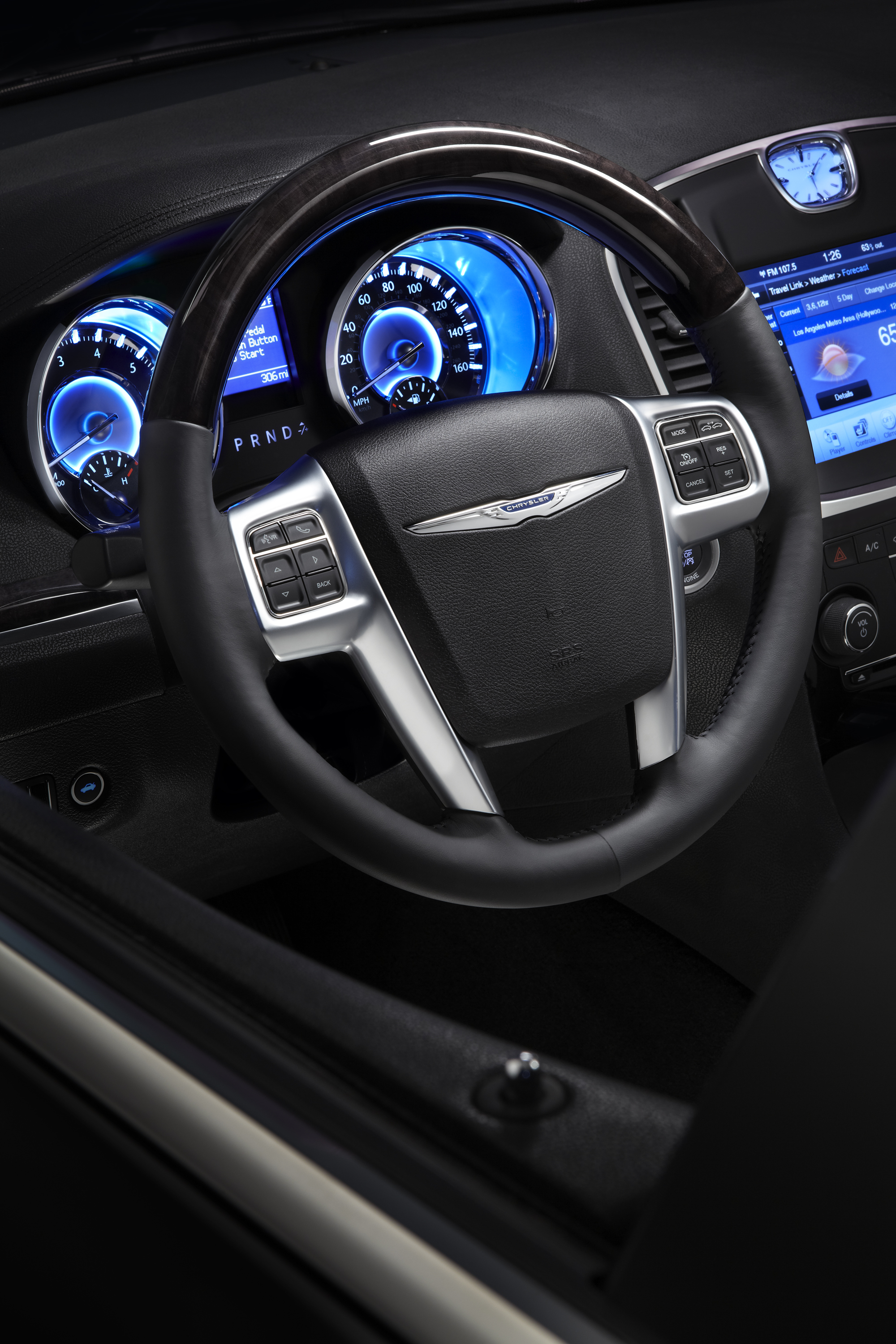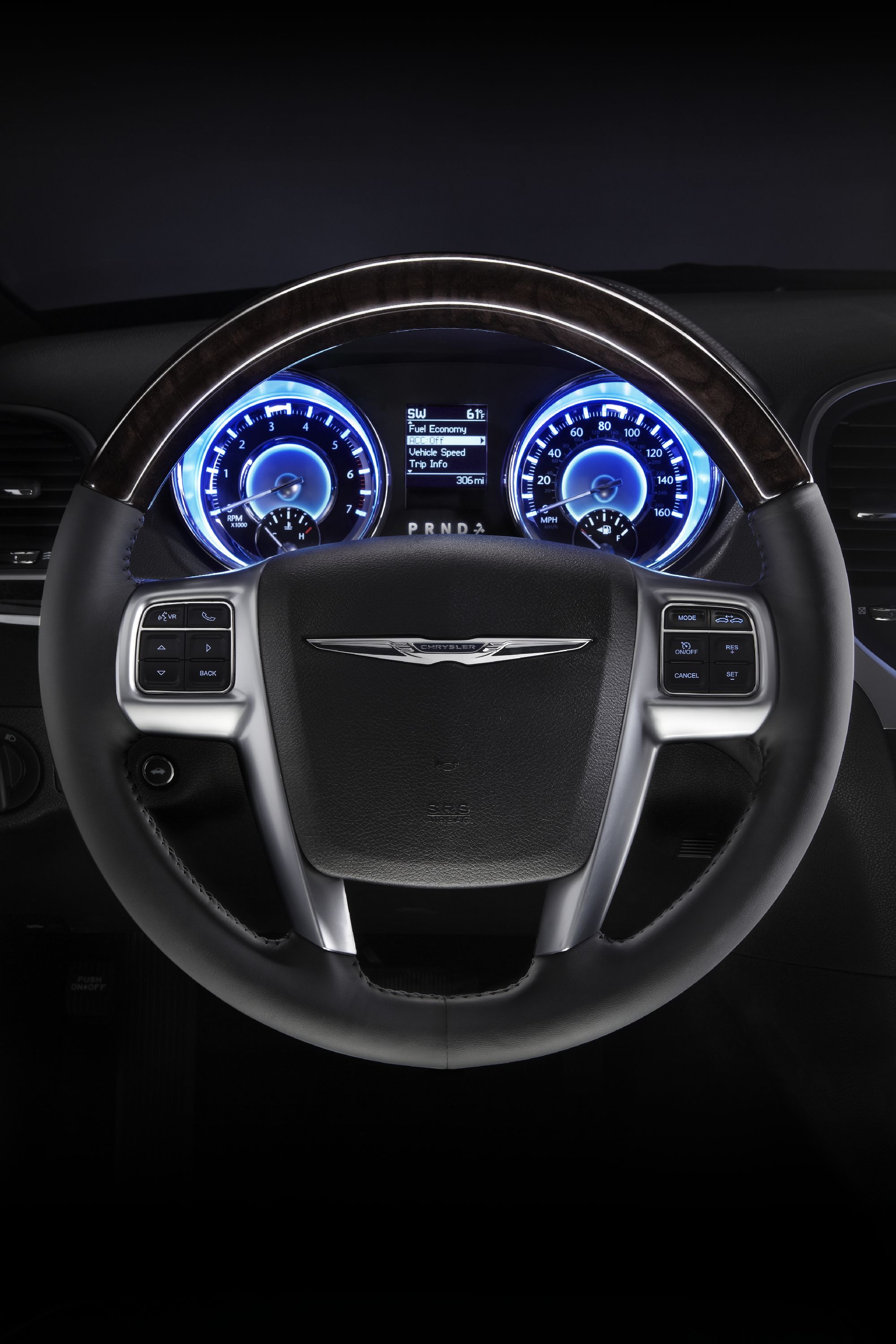 Designed to exude a luxurious environment, the 2011 Chrysler 300 sedans feature cast-skin instrument and door panels with three-dimensional dual gloss graining for a premium appearance and suppleness. Bright chrome contrasted with liquid chrome accents give the Chrysler flagship sedan the appearance of milled aluminum. For added detail, a new instrument cluster features two large gauge faces with sapphire blue illumination and chrome ring accents. Providing a premium and contemporary environment is an all-new sapphire blue LED-illuminated ambient interior lighting.