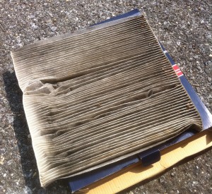 See the picture to the left. Now ask yourself, “How long has it been since I last changed my cabin air filter, or had it changed?” If that time frame is either so long it’s no longer in your memory, or it’s been more than a year, it’s time for a change. Click past the jump for some general-purpose instructions, as well as detailed instructions on removing and replacing the cabin air filter in a 7th generation (currently 2009-2012) Nissan Maxima.