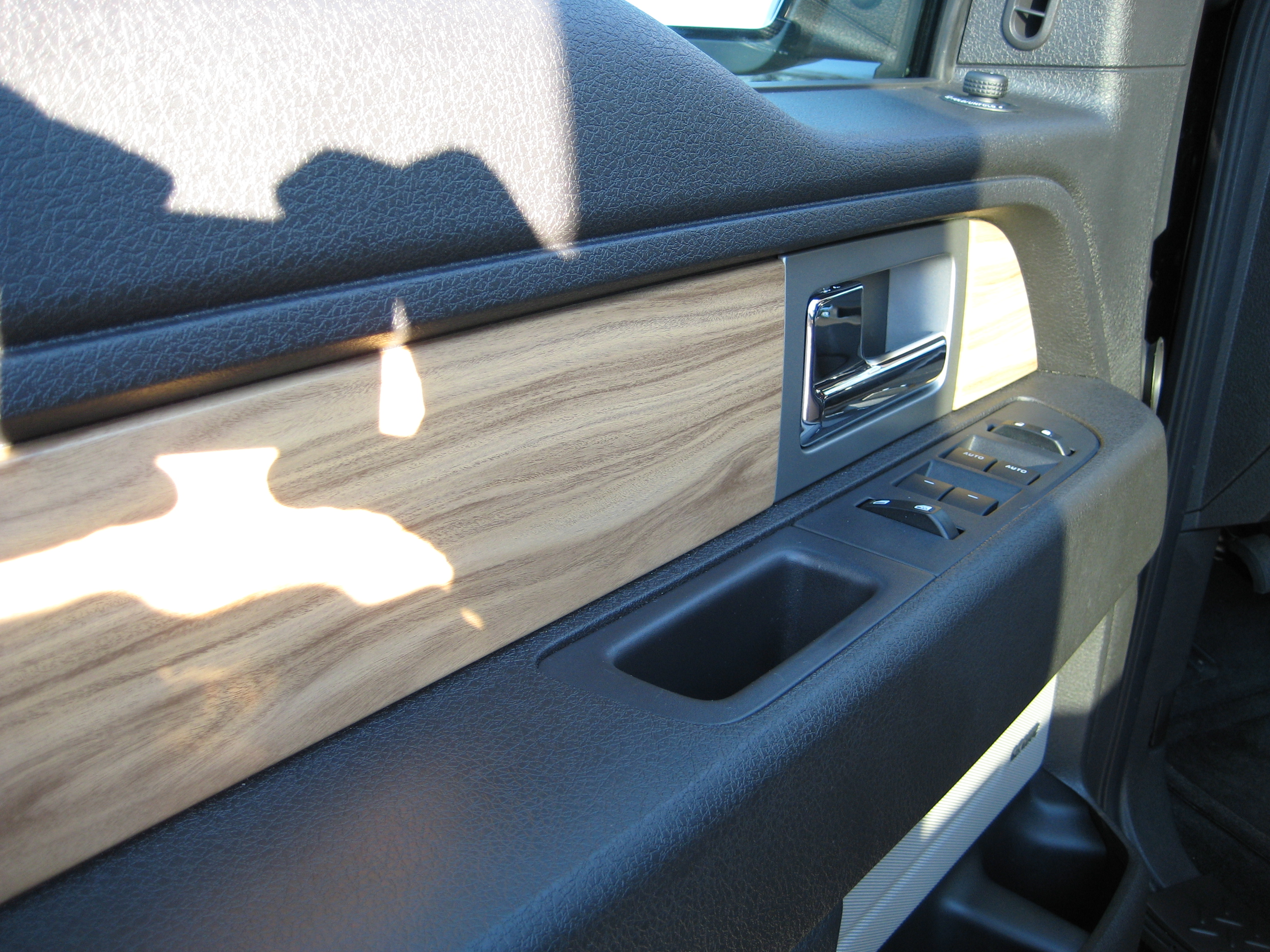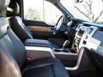 Inside, the cabin is well-appointed, with a feature-rich steering wheel, the optional navigation system, SYNC, and for long-haul comfort, optional 10-way adjustable bucket leather seats featuring both heating and cooling. The amount and design of controls at hand are well thought out, although temperature knobs for the dual-zone automatic climate control would be nice. Furthermore, while there are a lot of plastic surfaces, they’re all nicely-grained. A bit of debate over the 2010 F-150 Lariat surrounds the color of the plastic wood trim, which went from dark in the old truck to lighter in the new one. At first, I thought it was a bit garish, but after spending some time behind the wheel, the light trim breaks up an otherwise dark feel. The front arm rests and other often-touched areas have been thankfully covered in soft-touch rubberized plastics, while the hard-plastic window sill isn’t at all uncomfortable to rest your arm on, if the weather permits rolling down the windows.