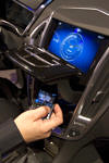 The heart of CUE is the eight-inch LCD multi-touch sensitive screen, seamlessly integrated into the top of the central instrument panel and a motorized fully capacitive faceplate at the bottom concealing a 1.8L storage area. The vibrant LCD screen displays CUE’s home page, which resembles a smart phone’s screen by using large, easy-to-target icons to execute commands. Capacitive technology refers to using electrodes to sense the conductive properties of objects, such as a finger.