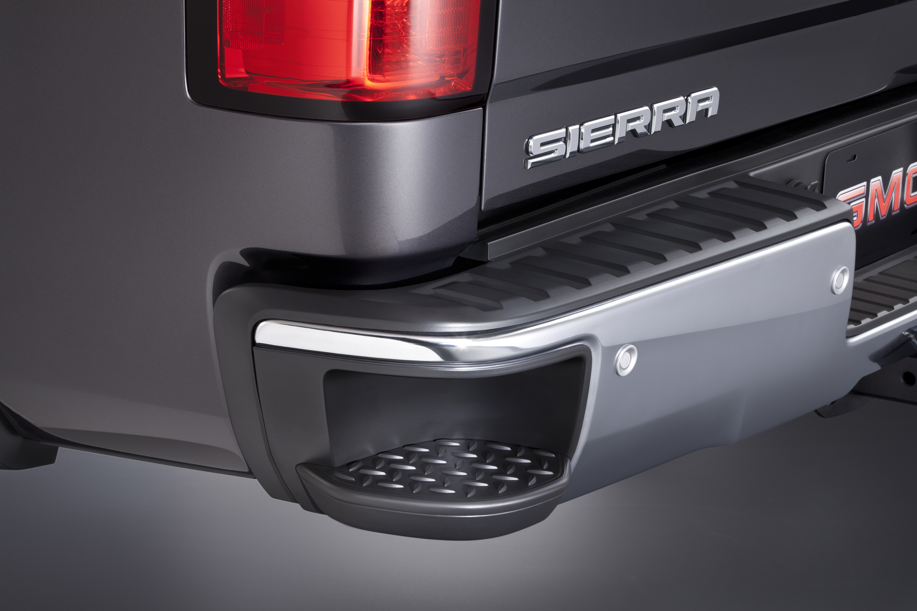 2014 GMC Sierra SLT Corner Step Detail 2014 GMC Sierra SLT has an available integrated Corner Step that along with a hand grips in the box side rail allows easy access to the bed.
