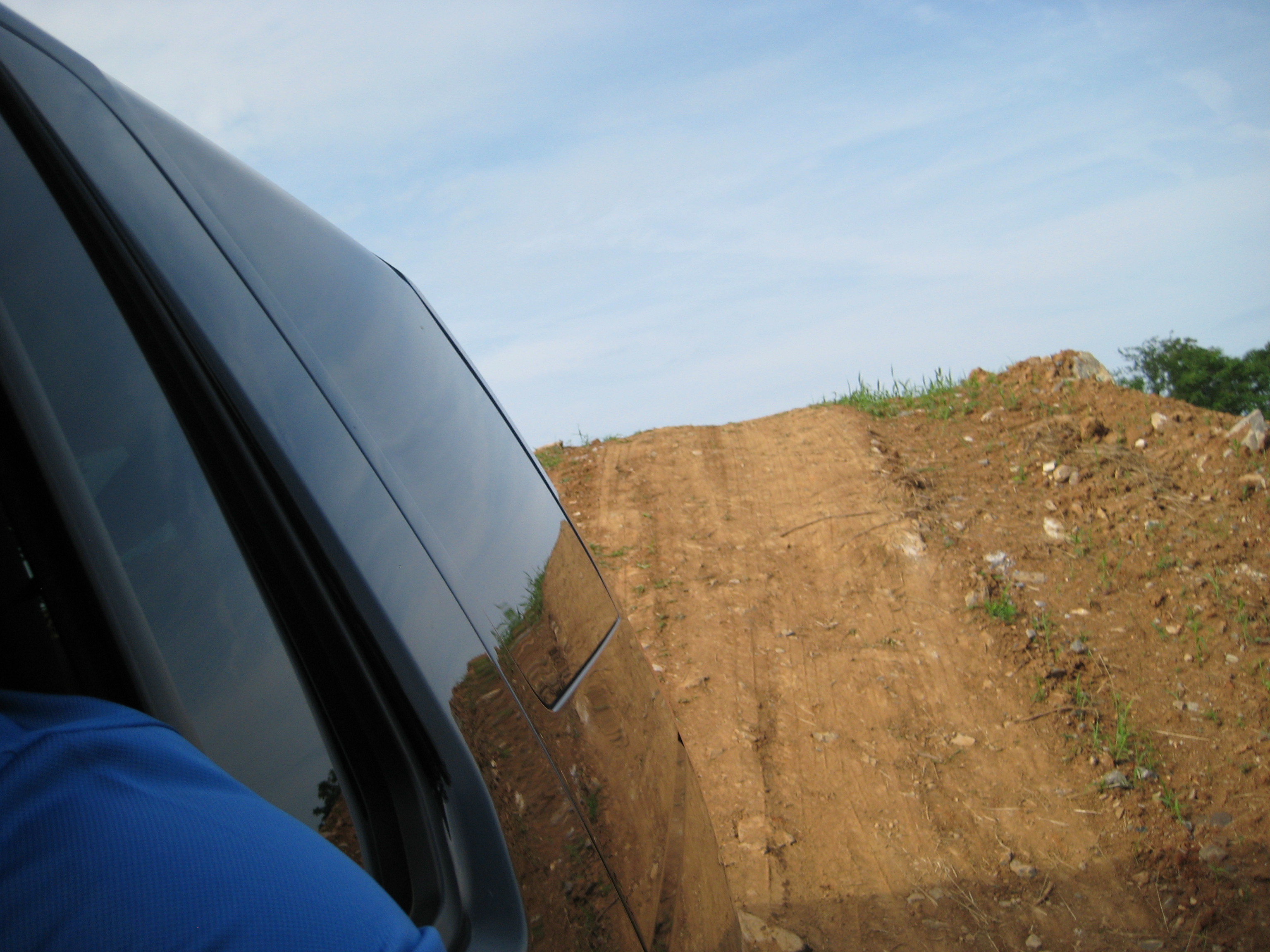 The Range Rover Sport raised itself on its air-ride suspension, lending us much-needed extra ground clearance. We proceeded to go up a hill that I’d have trouble walking up in anything less than hiking boots. The Sport, meanwhile, was shod in street tires, and still had no issues at all, crawling its way up to the top. The hill on the other side appeared even more daunting, presenting any driver whose vehicle doesn’t have a good approach angle, an expensive bill. The hill plunged down at the same rate it went up, but at the bottom it turned into a ditch, going back up a second time. The approach angle of the Sport, with its air-ride in fully-up mode, meant we cleared the ditch, thankfully.