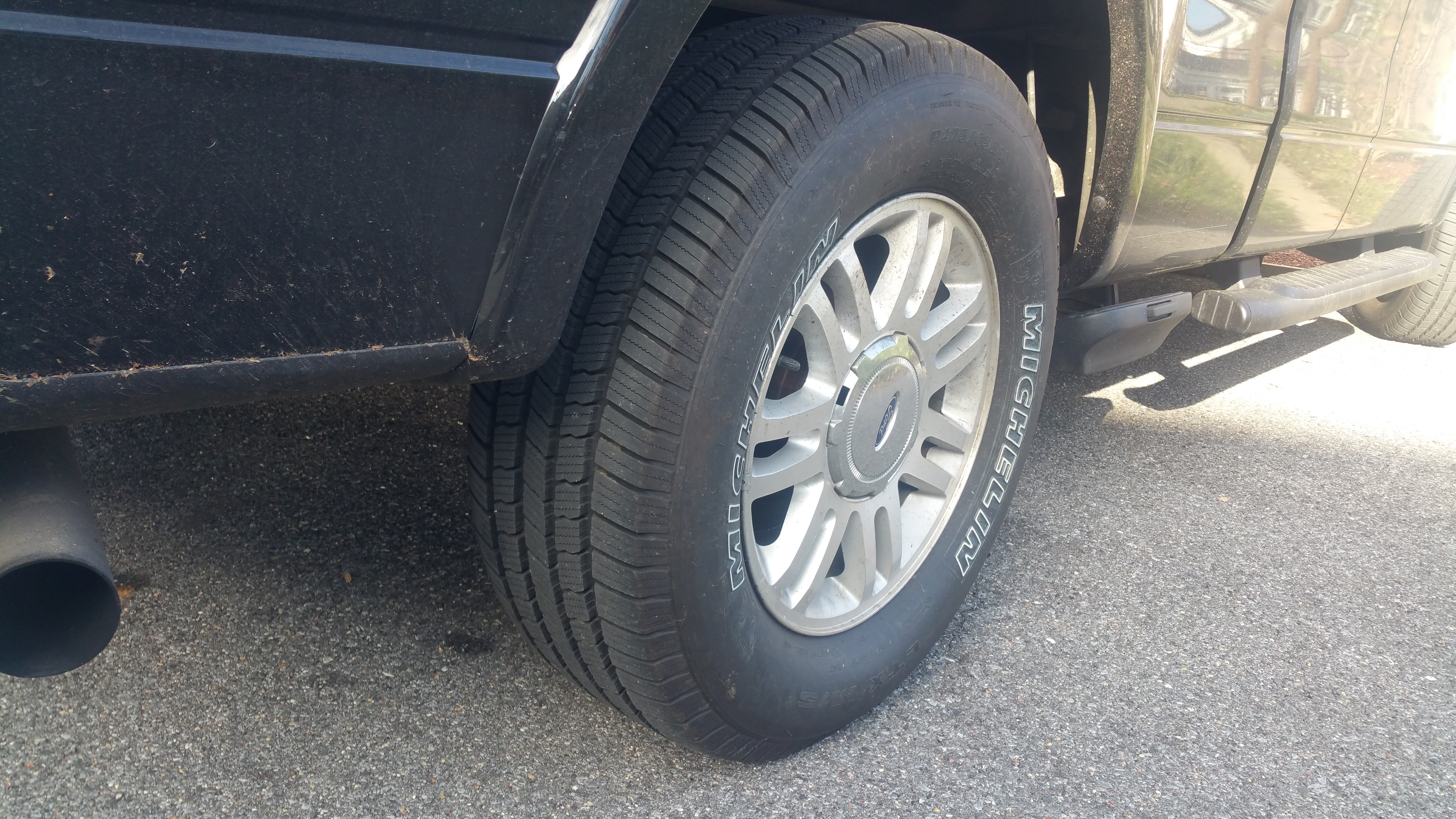 In July, I finally found a set of gently-used Ford chrome wheels. They were a $995 option when the truck was new, and I’ve been looking for a set for under $1,000 since I bought the truck. Finally, a set popped up on CraigsList, so the missus and I went for a drive. Inspecting them found few flaws, and the set even came with the tire pressure monitoring system (TPMS) sensors, and Pirelli Scorpion ATR tires installed. The only downside: the tires were from mid-2009, and were going to need replacement soon.