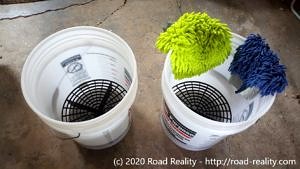 - Add a “grit guard” to each clean, 5-gallon bucket.