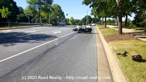 Oh, here are some pictures I snapped at the scene, right after it happened (and after a driver stopped and helped me pick the bike up):